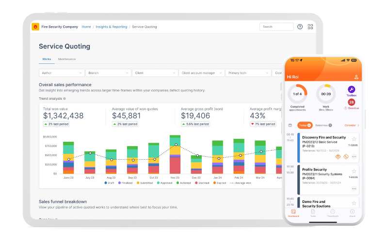 Provide your clients with real-time transparency over their fire safety compliance by hosting all inspection reports, deficiency lists, and asset information in one convenient location. Streamline communication and fast-track quote approvals by giving clients instant access to sales quotes, deficiency quotes, and invoices.